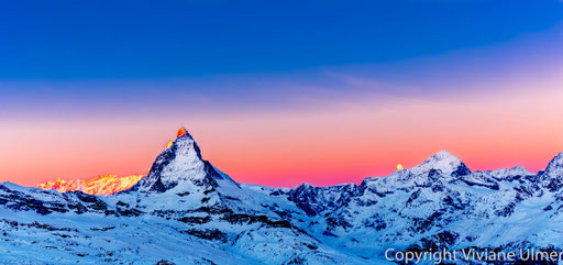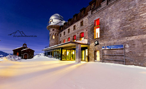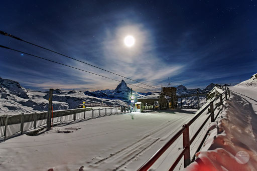Das Kulm-Hotel in Zermatt thront in 3100 m Höhe über dem Meeresspiegel auf dem Gornegrat und gehört damit zu den höchst gelegensten Hotels in den Alpen. Nur das Berghotel "Grawand" im Schnalstal liegt mit 3212 m höher. Die Aussicht ist zu jeder Tageszeit ein Erlebnis, ist man dort oben doch von zahlreichen Viertausendern umgeben. Sobald aber die Gornegratbahn das letzte Mal am Abend ins Tal gefahren ist und die zahlreichen Tagestouristen damit verschwunden sind, wird es ruhig auf dem Gornegrat und die wahre Mystik dieses Ortes entfaltet sich! So ist auch die nebenstehende Aufnahme mitten in der Nacht um 3:00 Uhr entstanden.
